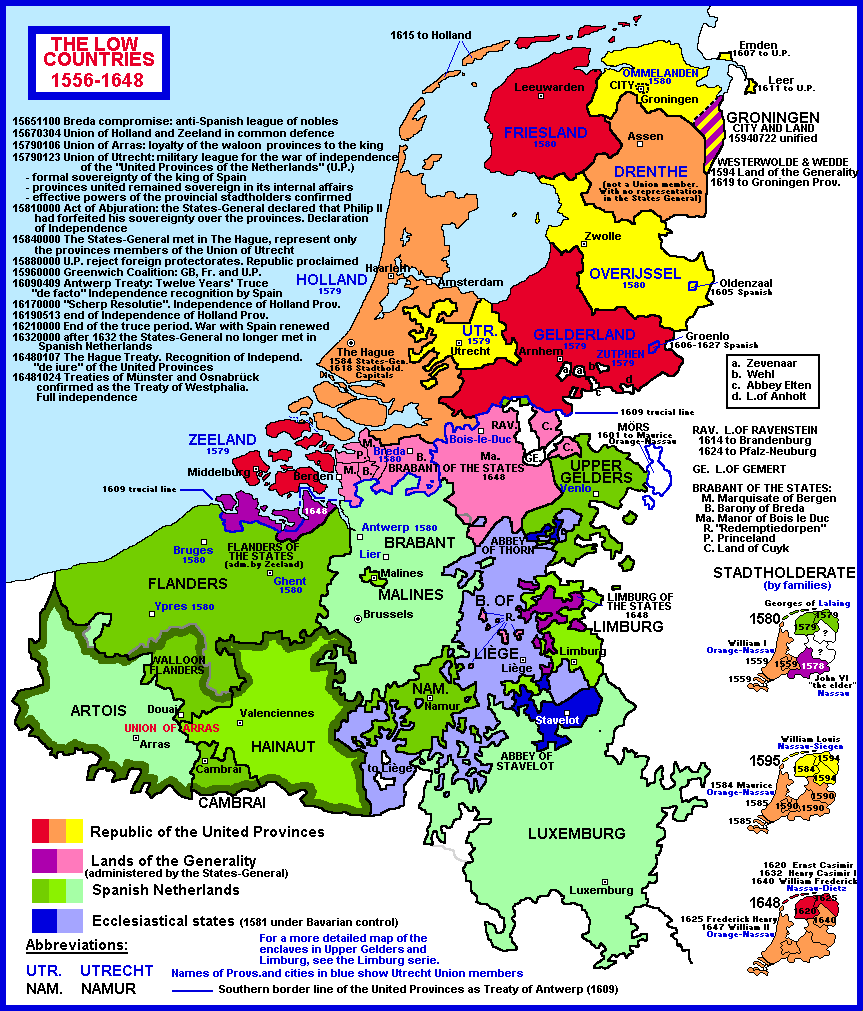 En 1579, las provincias rebeldes firmaron la Unión de Utrecht en respuesta a la Unión de Arras, que los estados del sur firmaron con el Rey de España. De esta manera invalidó el acuerdo entre los católicos y el Reino de España. La unión de Utrecht ha incluido la tolerancia religiosa para no perder el apoyo a la región católica. Este acuerdo, que luego se consideró la base de la independencia holandesa, no fue aprobado formalmente hasta 1648 por el Tratado Westfalia.